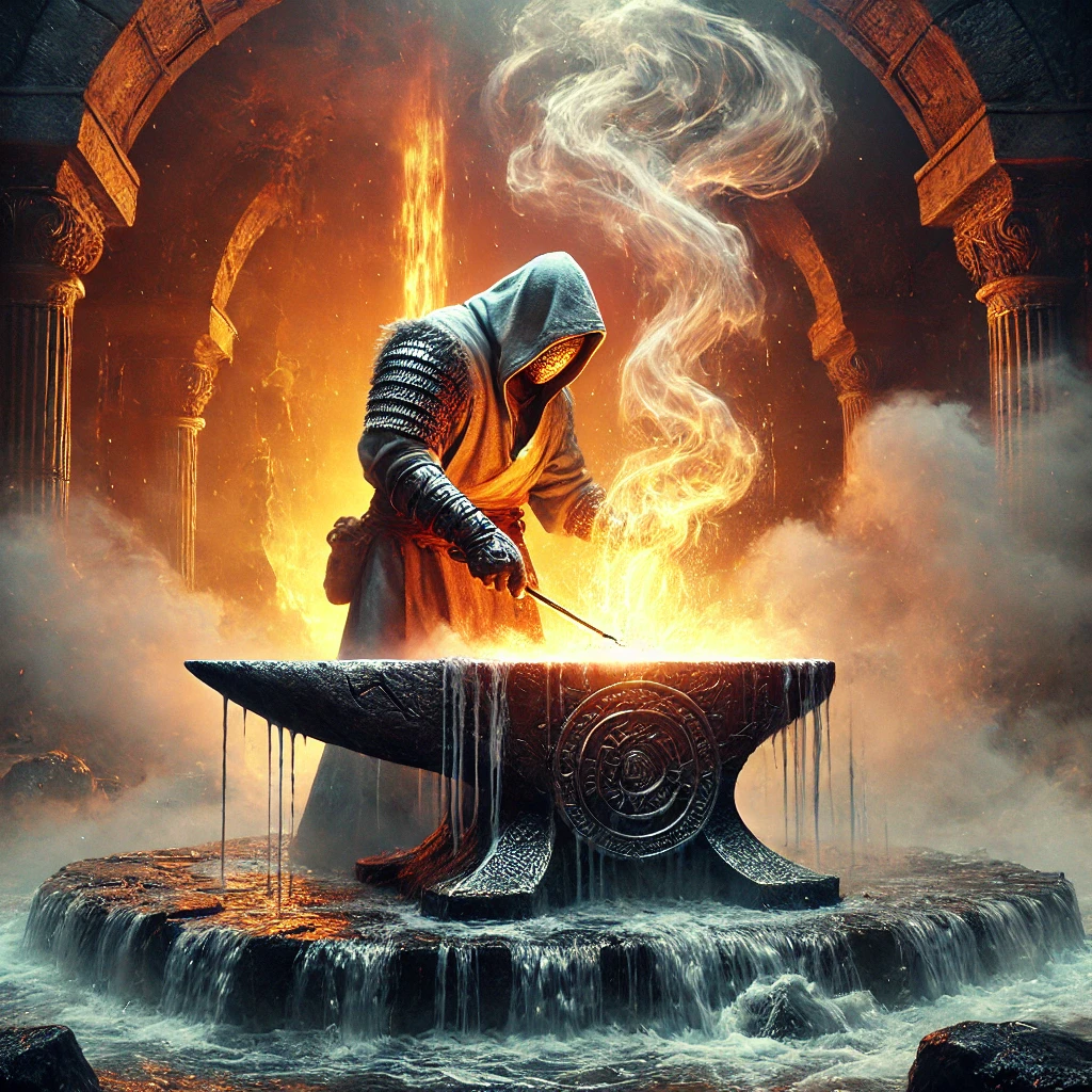 Apprentices work in near darkness, learning to sense the strength of steel through heat and pressure rather than sight. To forge without touch is to forge blindly.