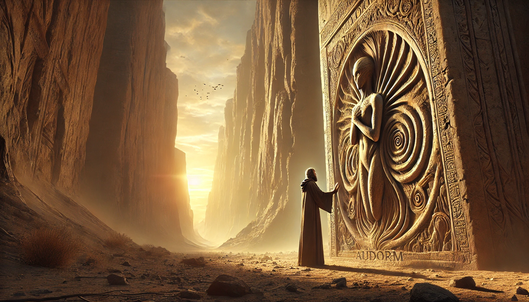 Deep in the deserts of Aridia, the Mouth of the First Echo is a place of pilgrimage for the Audorm people. Here, sound never dies—it only waits. It is said that those who listen long enough can hear not just the past, but the voices of gods themselves.