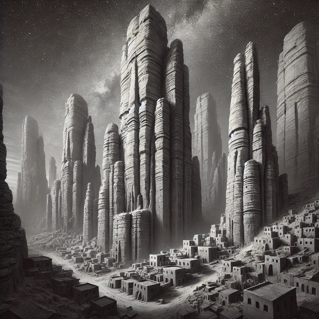 Yssarei does not stand in silence. The city was sculpted by the wind, its sandstone towers hollowed and shaped to sing with every passing gust. To an outsider, the city hums with a thousand voices, a natural symphony carved by time and guided by the Audorm mastery of sound. To its inhabitants, this is not just music—it is memory, history, and the foundation of their way of life.
